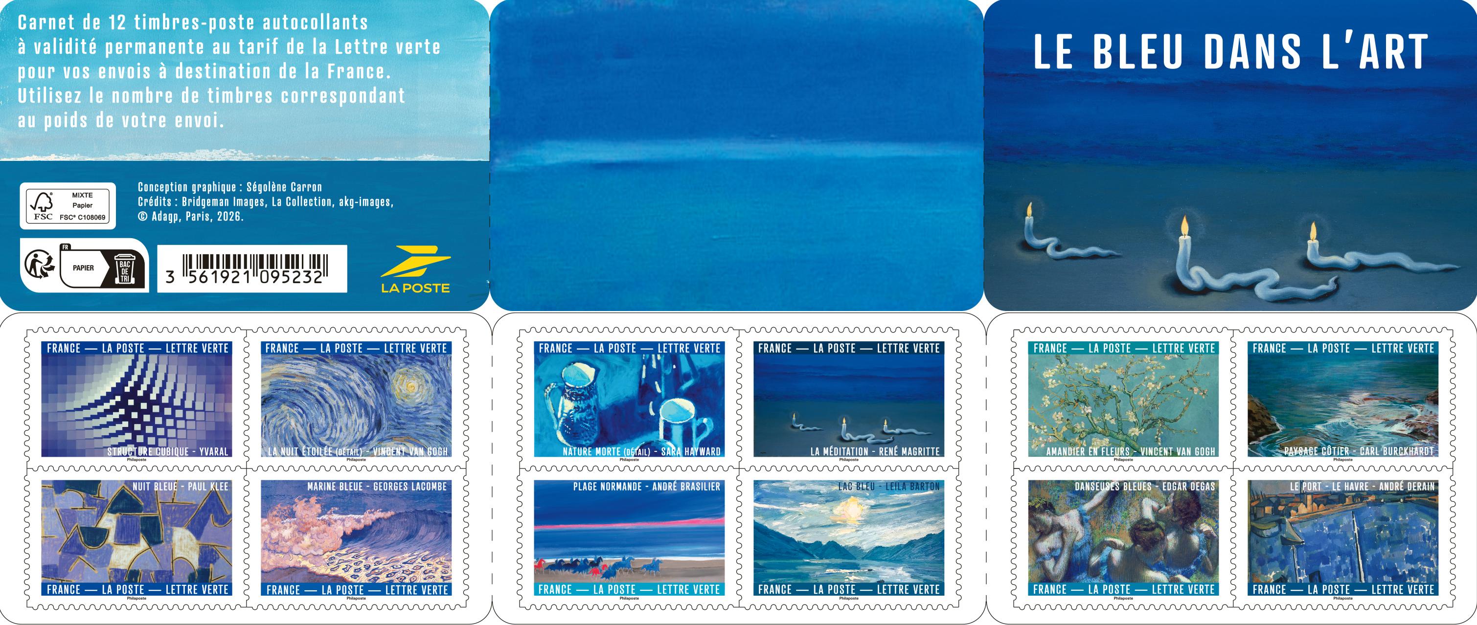 Carnet de timbres autoadhésifs : le bleu dans l'art. |